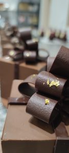 | Ingrédients | Chocolat au lait 41% (beurre de cacao, lait entier en poudre, sucre, fèves de cacao, sucre roux, extrait naturel de vanille, émulsifiant : lécithine de tournesol, extrait de malt d’orge), chocolat noir 64% (fèves de cacao République Dominicaine, sucre roux, beurre de cacao, émulsifiant : lécithine de tournesol, extrait naturel de vanille), paillettes or |