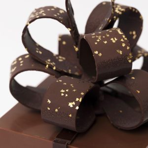 Offrez un véritable écrin de gourmandise avec notre cadeau en chocolat, méticuleusement moulé en chocolat noir 64% et chocolat au lait 41%.