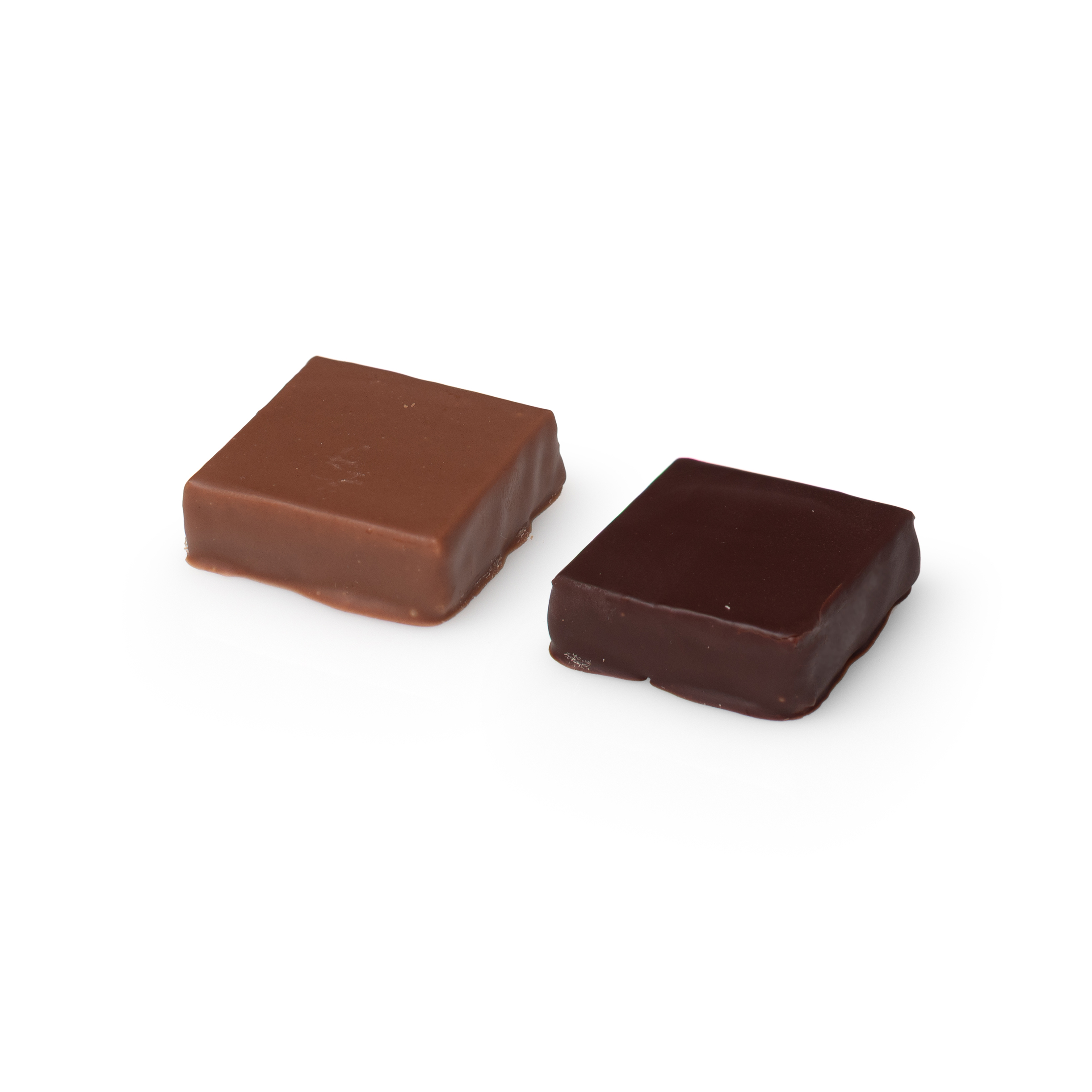 Craquez pour nos bonbons de chocolat crispy, disponibles en versions noir intense et lait onctueux.