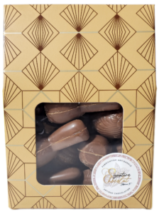 | Ingrédients | Lapins gianduja (gianduja 75 % : noisettes, sucre glace) chocolat noir 64% (Fèves de cacao République Dominicaine, sucre, beurre de cacao, émulsifiant : lécithine de tournesol, extrait naturel de vanille) Chocolat au lait 41% (beurre de cacao, lait entier en poudre, sucre, fèves de cacao, sucre roux, extrait naturel de vanille, émulsifiant : lécithine de tournesol, extrait de malt d’orge), Oeufs praliné (praliné 75 %: amandes, noisettes, sucre, sirop de glucose, sel), chocolat noir 64% (Fèves de cacao République Dominicaine, sucre, beurre de cacao, émulsifiant : lécithine de tournesol, extrait naturel de vanille) Chocolat au lait 41% (beurre de cacao, lait entier en poudre, sucre, fèves de cacao, sucre roux, extrait naturel de vanille, émulsifiant : lécithine de tournesol, extrait de malt d’orge) |