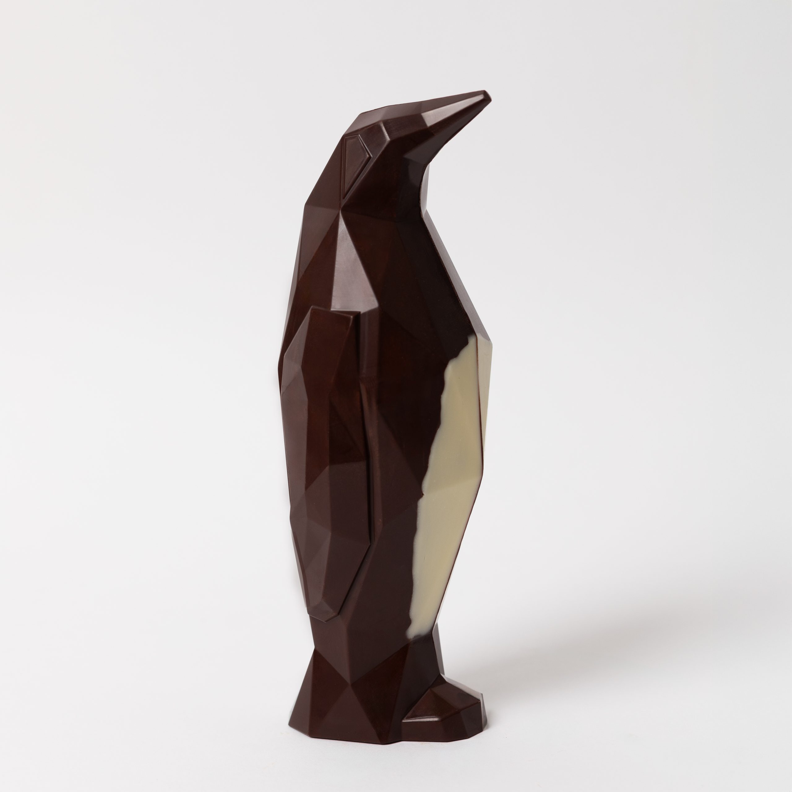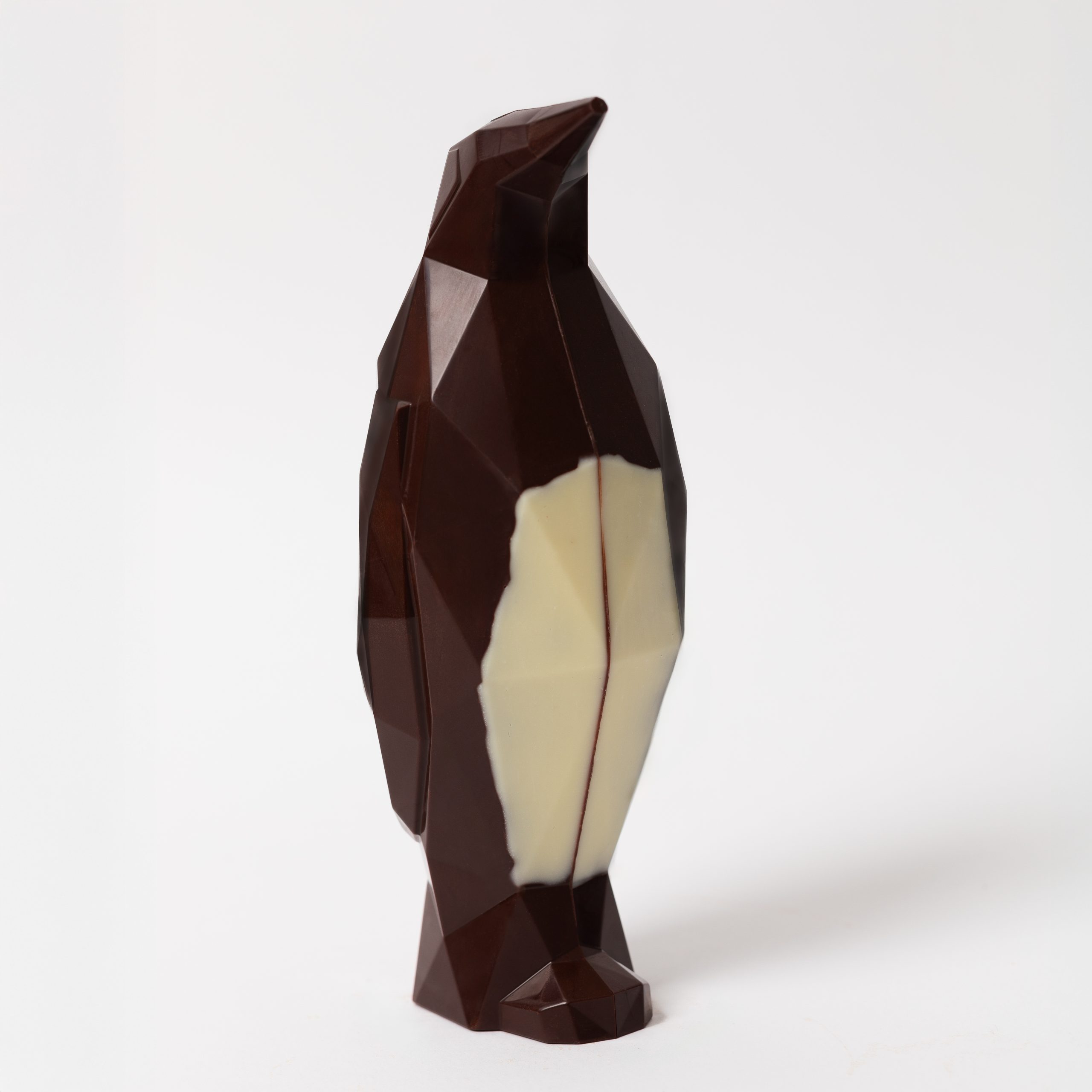 Découvrez notre adorable pingouin origami, une création élégante et moderne qui marie la douceur du chocolat noir 64% à la finesse du chocolat blanc 35%.