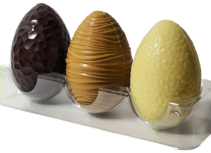 Trois petits œufs, trois fois plus de gourmandise ! Ce trio de chocolats réunit différentes saveurs et textures pour une dégustation pleine de surprises.